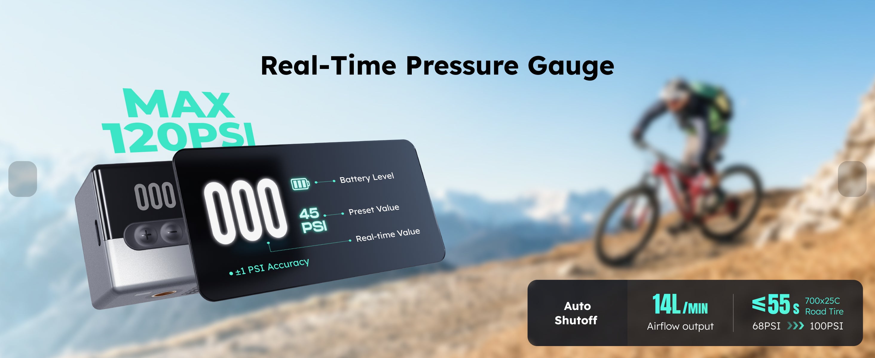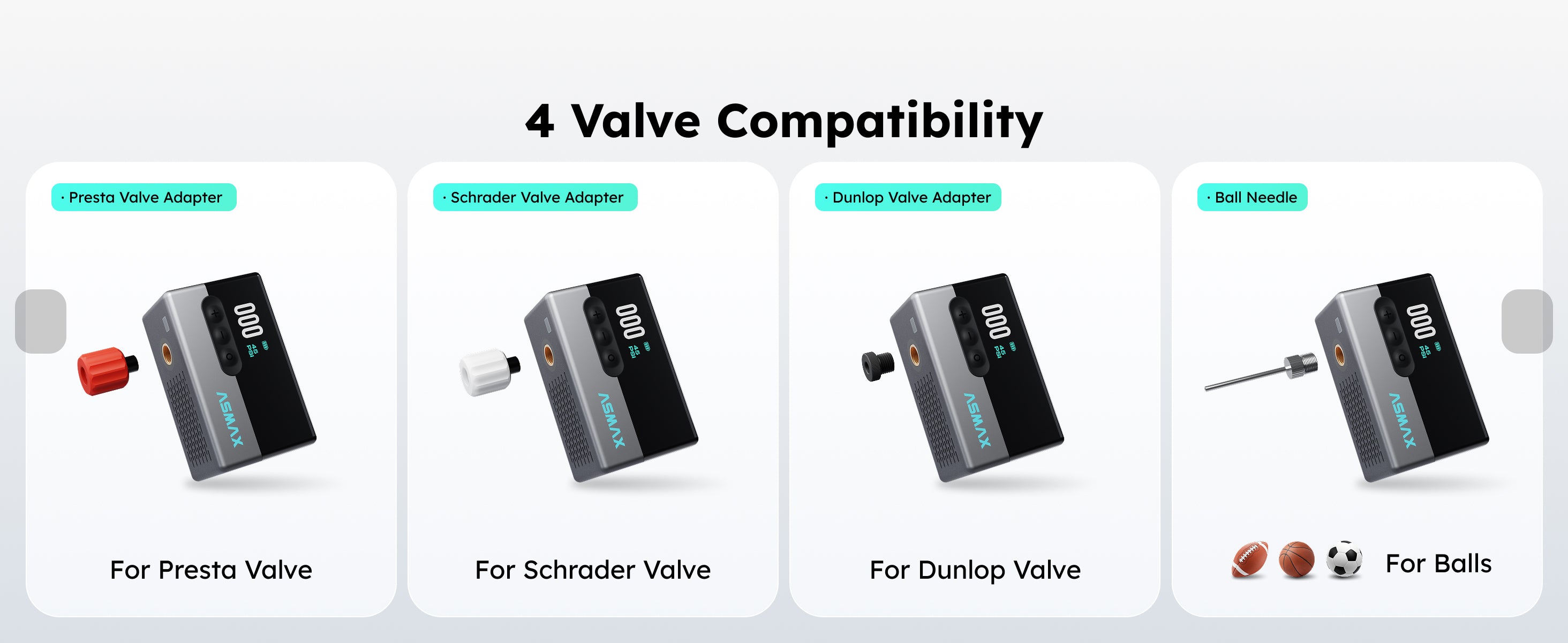 4 en 1, inflador de neumáticos, inflador de balones, manómetro de neumáticos, luz LED