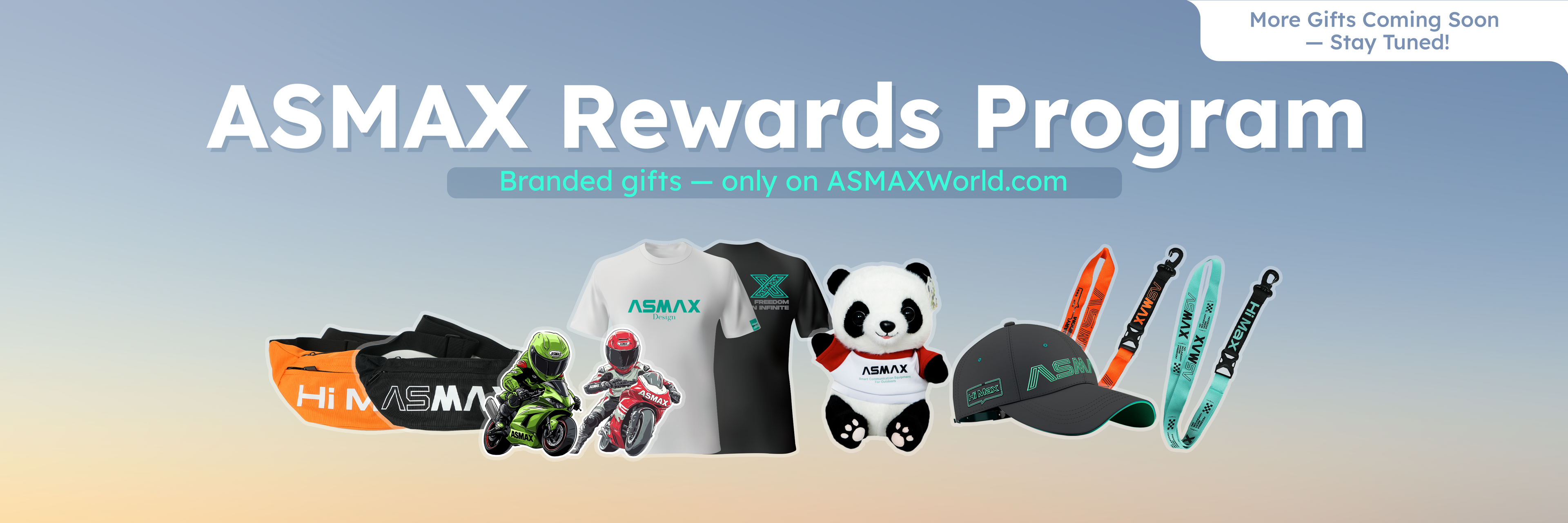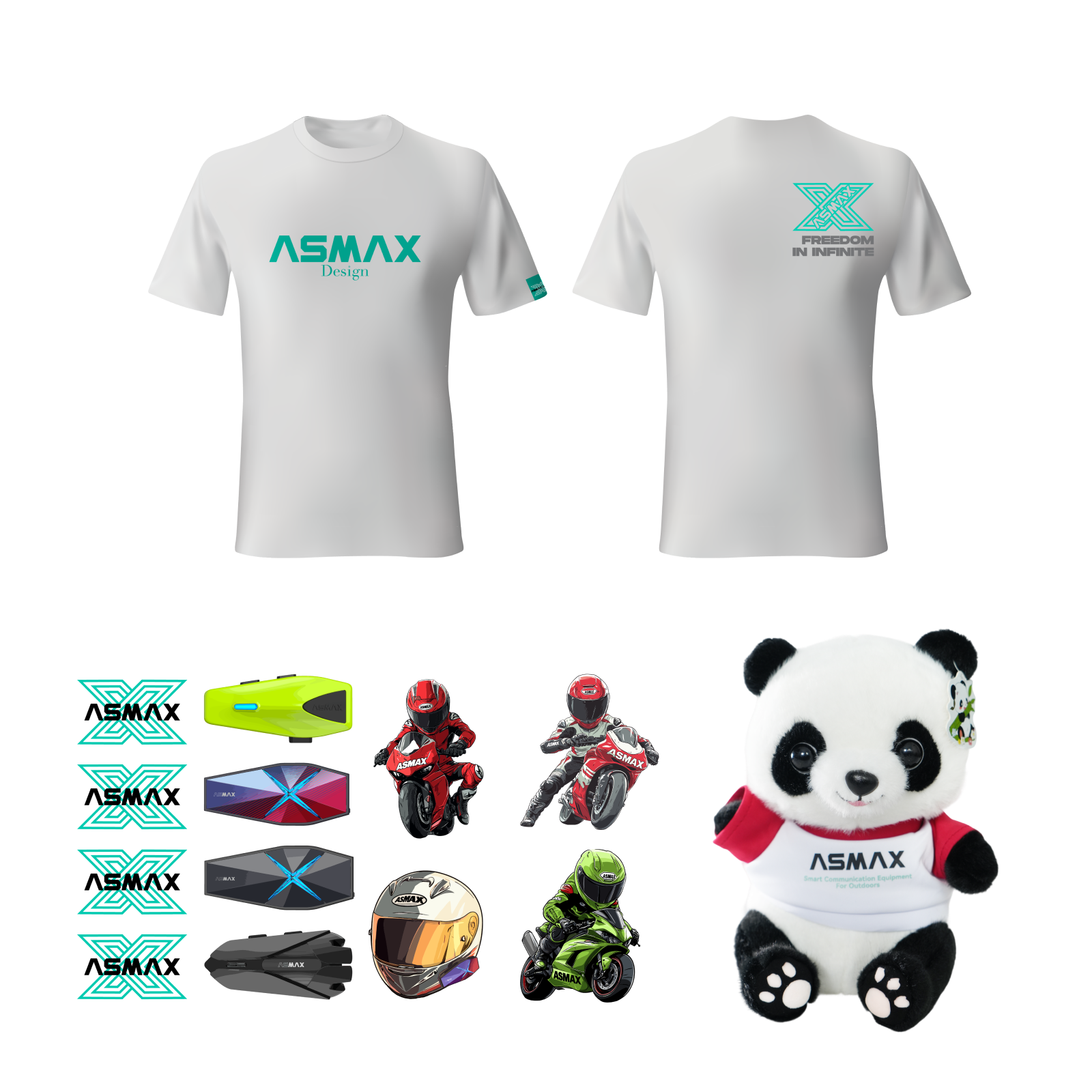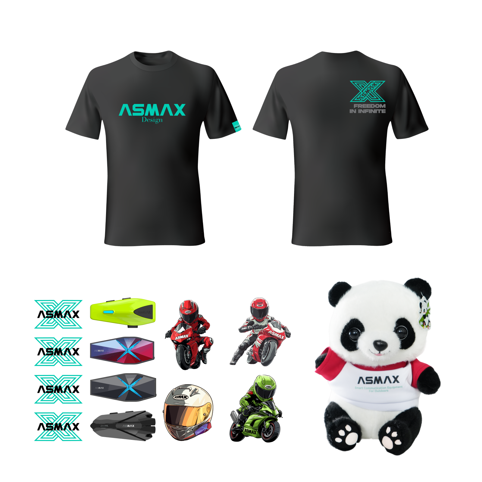Includes an ASMAX T-shirt, Panda plush, and sticker pack — a perfect combo for every ASMAX rider.