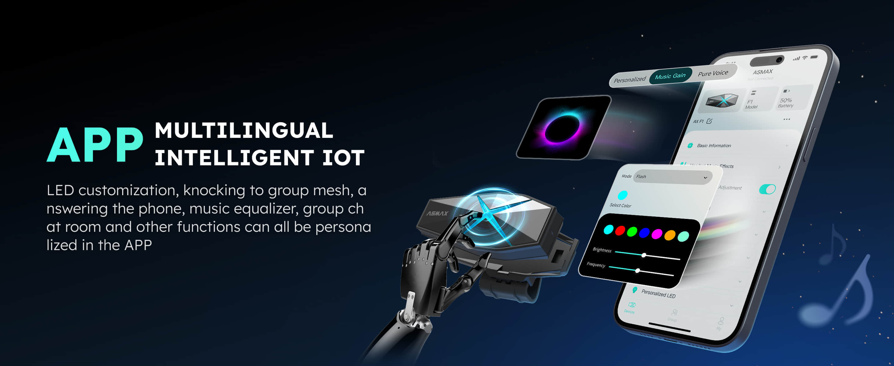 Enjoy effortless control ofnavigation, calls, messages, and musicwhen connected to the app and internet. No signal? No problem — just say " Hi Max", the built-in offline voice system responds to commands inEnglish or Spanish, and you can switch languages anytime via the app.