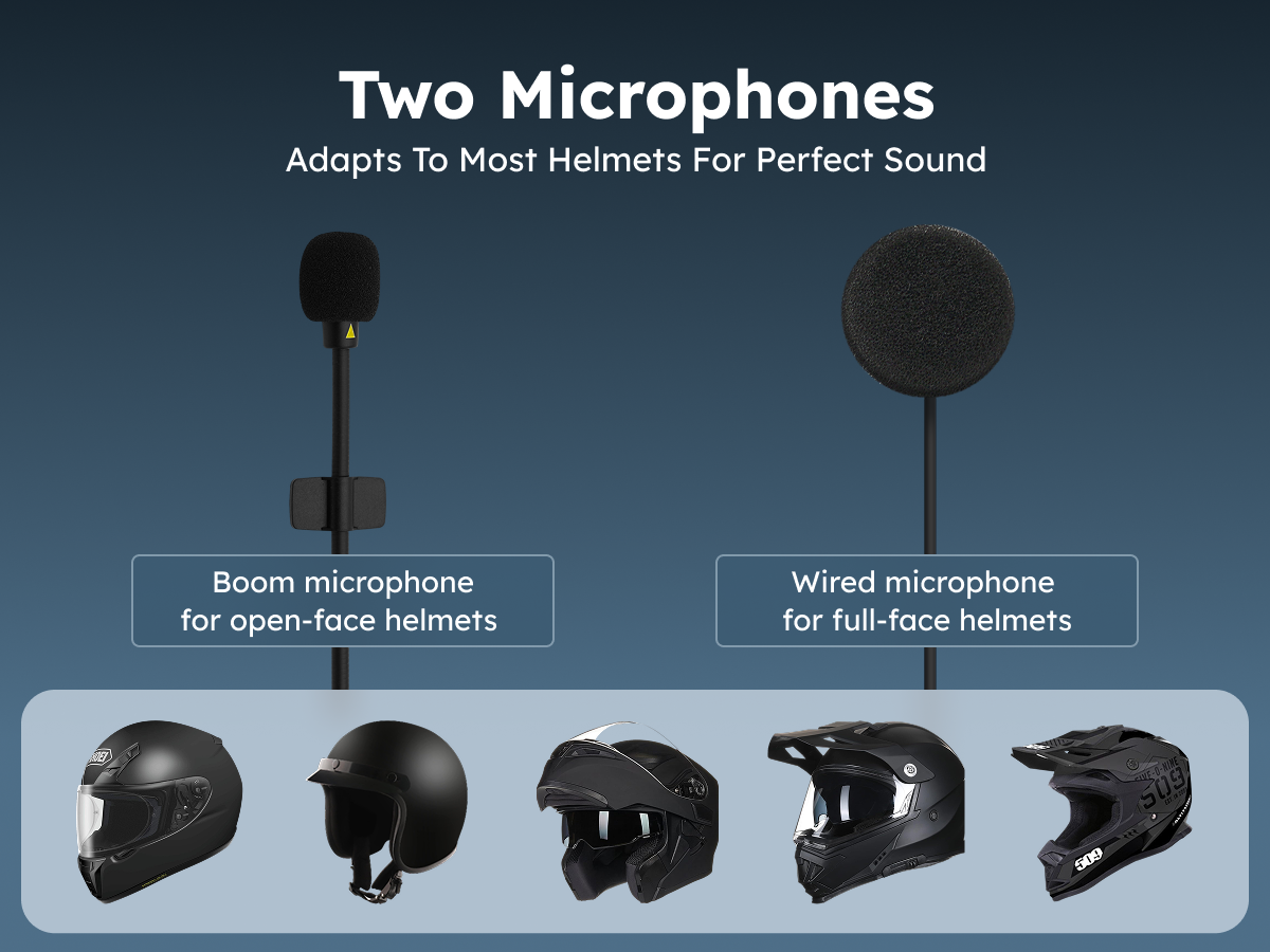 Featuring two microphones, it’s compatible with both open-face and full-face helmets. Enjoy clear communication and superior sound whether chatting with riders or taking calls—every ride, every time.